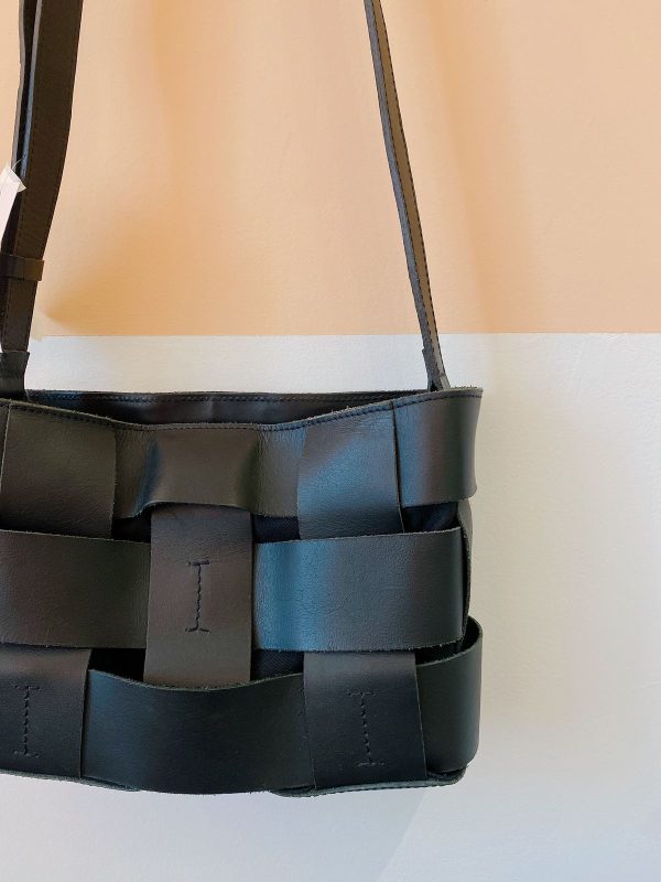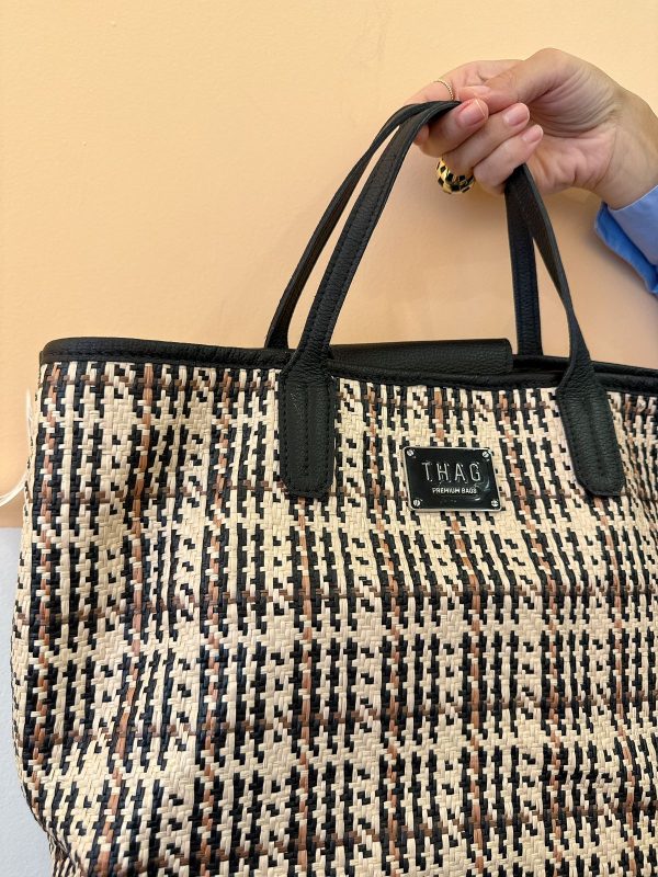 Bolsa palha couro preto Thag